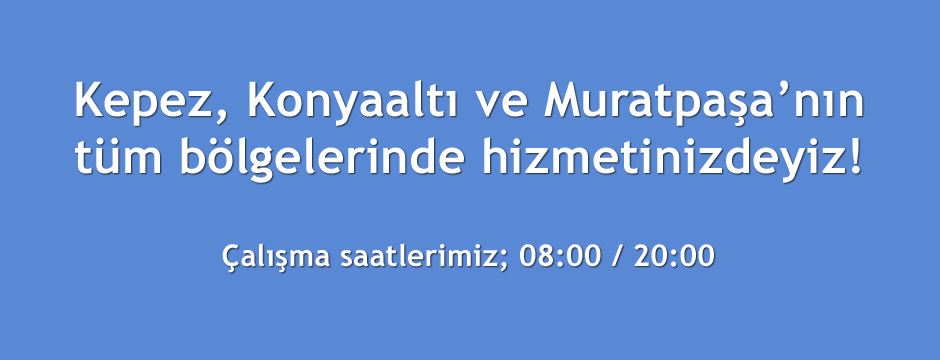 Kepez, Konyaaltı ve Muratpaşa'da 08:00 / 20:00 arası bir telefon uzağınızdayız!